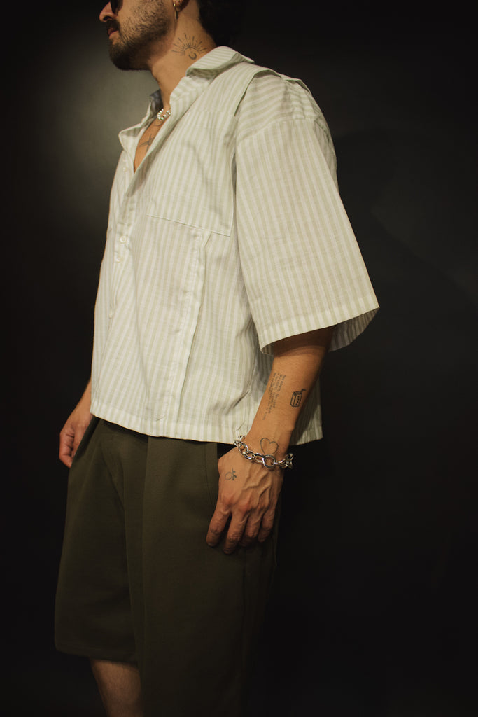 Nuestro best seller llega en un versión perfecta para los días de sol, con un print sutil en rayas oliva, con una silueta súper versátil para que la adaptes a tu estilo personal sin limites.